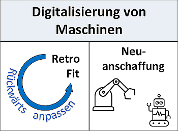 Voraussetzung für „Smart Factories” sind unter anderem digitalisierte Maschinen und Anlagen. Diese sind essenziell, um die Vernetzung und Automatisierung der Produktion zu ermöglichen und qualitätsrelevante Daten zu erfassen. Dazu werden entweder bestehende Anlagen weitgehend digitalisiert, d. h. nachgerüstet (Retrofit), oder komplett neue Anlagen mit modernster Technik und integrierter Digitalisierung gebaut (s. Abb. 4).