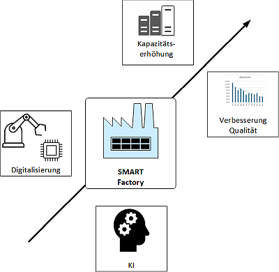 Ein weiterer wichtiger Aspekt von KI ist die Integration von Smart Factories. Diese intelligenten Fabriken nutzen vernetzte Systeme und Automatisierung, um Produktionsprozesse zu optimieren und die Effizienz zu steigern. Durch die Kombination von Digitalisierung, KI und Smart Factories können Hersteller von Medizinprodukten ihre Produktionskapazitäten maximieren und gleichzeitig höchste Qualitätsstandards einhalten (s. Abb. 5).