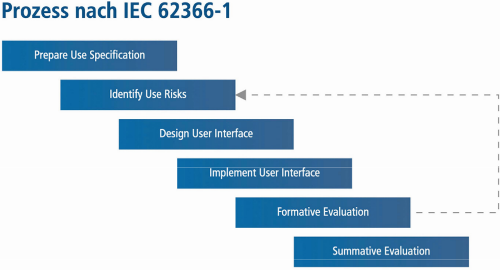 Dazu kommt, dass in vielen Entwicklungsprojekten zu spät mit den Aktivitäten der IEC 62366-1 begonnen wird. Statt beispielsweise ganz zu Beginn die Bedürfnisse der Anwender und Anwenderinnen zu ermitteln, steigen viele Entwicklungsteams direkt mit der Umsetzung der Benutzerschnittstelle ein. Schließlich „weiß man ja”, was die Nutzer/-innen brauchen. Die Spezifikation der Benutzerschnittstelle wird anhand des Ergebnisses nachdokumentiert und durch eine „vorsichtige” Risikoanalyse gerechtfertigt. In der abschließenden summativen Evaluierung finden sich dann hoffentlich nur noch bestätigende Erkenntnisse ...
