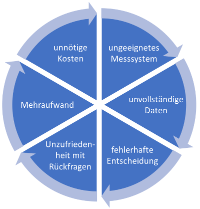 Erhalten Sie zum Beispiel unvollständige Daten von einem ungeeigneten Messsystem, wird Ihre Entscheidung höchstwahrscheinlich ebenso ungenügend sein. Unter Umständen haben Sie zudem widersprüchliche Aussagen zu den Daten. Das führt zu Rückfragen, die zur Beantwortung wiederum zusätzlichen Mehraufwand und letztendlich unnötige Kosten verursachen. Zudem führt dies zu Unzufriedenheit (s. Abb. 1) auf allen Hierarchieebenen eines Unternehmens. Diese Situation kann sich heute ein Unternehmen in der Medizintechnik nicht mehr erlauben.