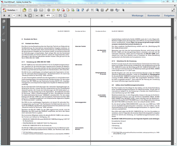 Die Broschüre interpretiert und erläutert die Anforderungen der EN ISO 13485:2016, gibt Erstanwendern eine Einführung und dient im Weiteren bei spezifischen Fragestellungen als Nachschlagewerk.[